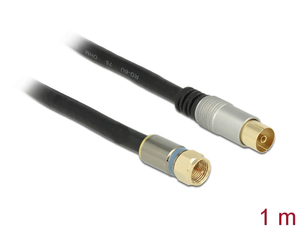 Câble d’antenne F mâle > IEC mâle RG-6/U quad shield 1 m noir Premium