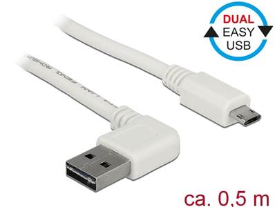 Câble EASY-USB 2.0 Type-A mâle coudé vers la gauche / droite > EASY-USB 2.0 Type Micro-B mâle blanc