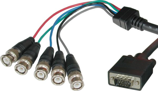 Câble SVGA HD15M / 5 x BNC, 1,80 mètre, 3 couleurs de base + synchro horizontale & verticale