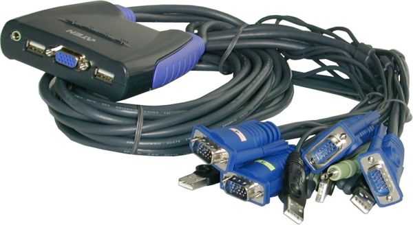 Système de contrôle 4 UCs USB, écran, clavier, souris avec câbles intégrés 1,80 mètre, ATEN, RoHS Le KVM CS64U vous permet de piloter 4 unités centrales avec un ensemble écran, clavier, souris (USB). Transmission du son Le passage d'une unité centrale à l'autre s'opère en appuyant deux fois sur la touche "Arrêt défil" Fonction auto-scan pour contrôler l'opération de l'ordinateur Branchable à chaud Aucun logiciel n'est nécessaire pour piloter le boîtier de partage. Nombre de leds : 4 pour signaler l'unité centrale sélectionnée Connecteurs : Pour le boîtier : - 1 HD15 points femelle (pour l'écran) - 2 USB femelles (1 clavier et 1 souris) - 1 jack audio stéréo 3,5 mm femelle Pour les unités centrales : - 4 HD15 points mâles numérotés de 1 à 4 (pour les sorties écran des UCs) - 4 USB mâles (pour la connexion des claviers et souris) - 4 jacks audio stéréo 3,5 mm mâles (pour la connexion des haut-parleurs) Compatibilité : Windows 98 se / Me / 2000 / XP / Vista, FreeBSD, Red Hat Linux, Netware / RS-6000 Résolution vidéo maxi : 2048 x 1536 pixels, 60 Hz, DDC2B Longueur du câble : 1,80 mètre par câble pieuvre Dimensions totales P x l x h = 105 x 95 x 23 mm (le boîtier) pour 780 g Dimensions emballage P x l x h = 223 x 265 x 95 mm pour 1,028 Kg Alimentation : Auto alimenté par les ports USB Matériaux : Plastique RoHS : Oui Comprend : - 1 boîtier CS64U avec câbles intégrés - 1 documentation